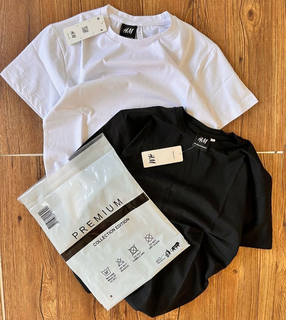 Upgrade your everyday style with the H&M LuxeFit Duo – a pack of two ultra-premium cotton T-shirts in classic Black & White. Crafted from soft, breathable fabric, these tees offer a perfect slim-relaxed fit and are designed to keep you cool, confident, and effortlessly stylish all day.